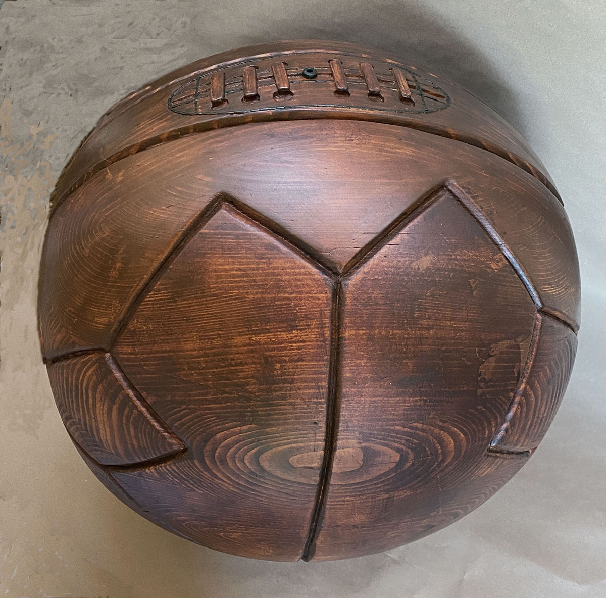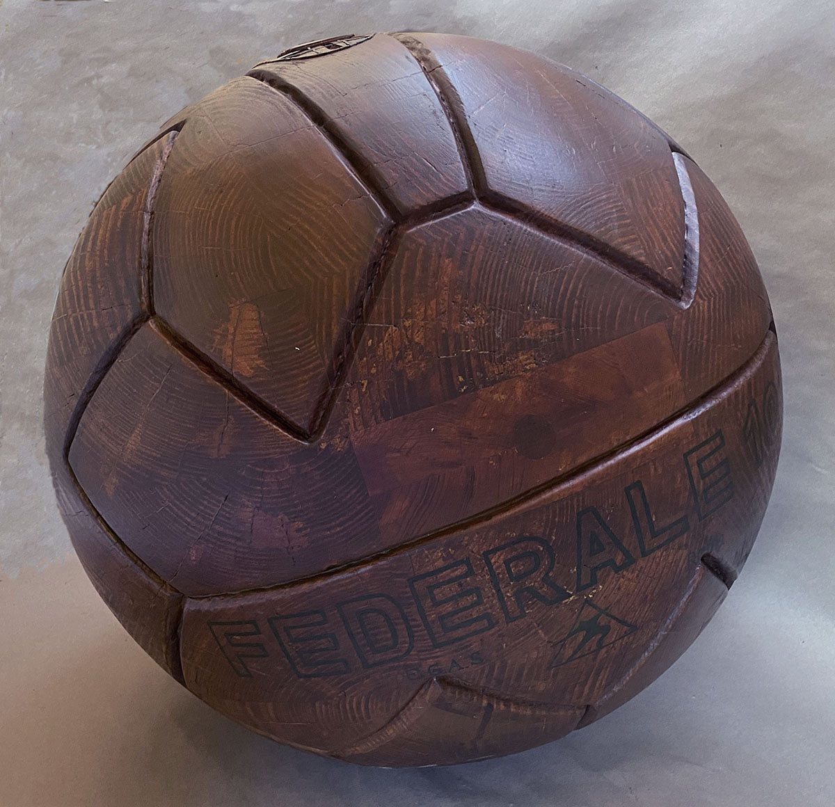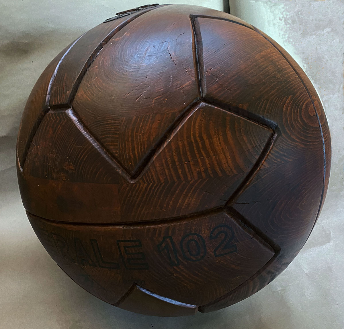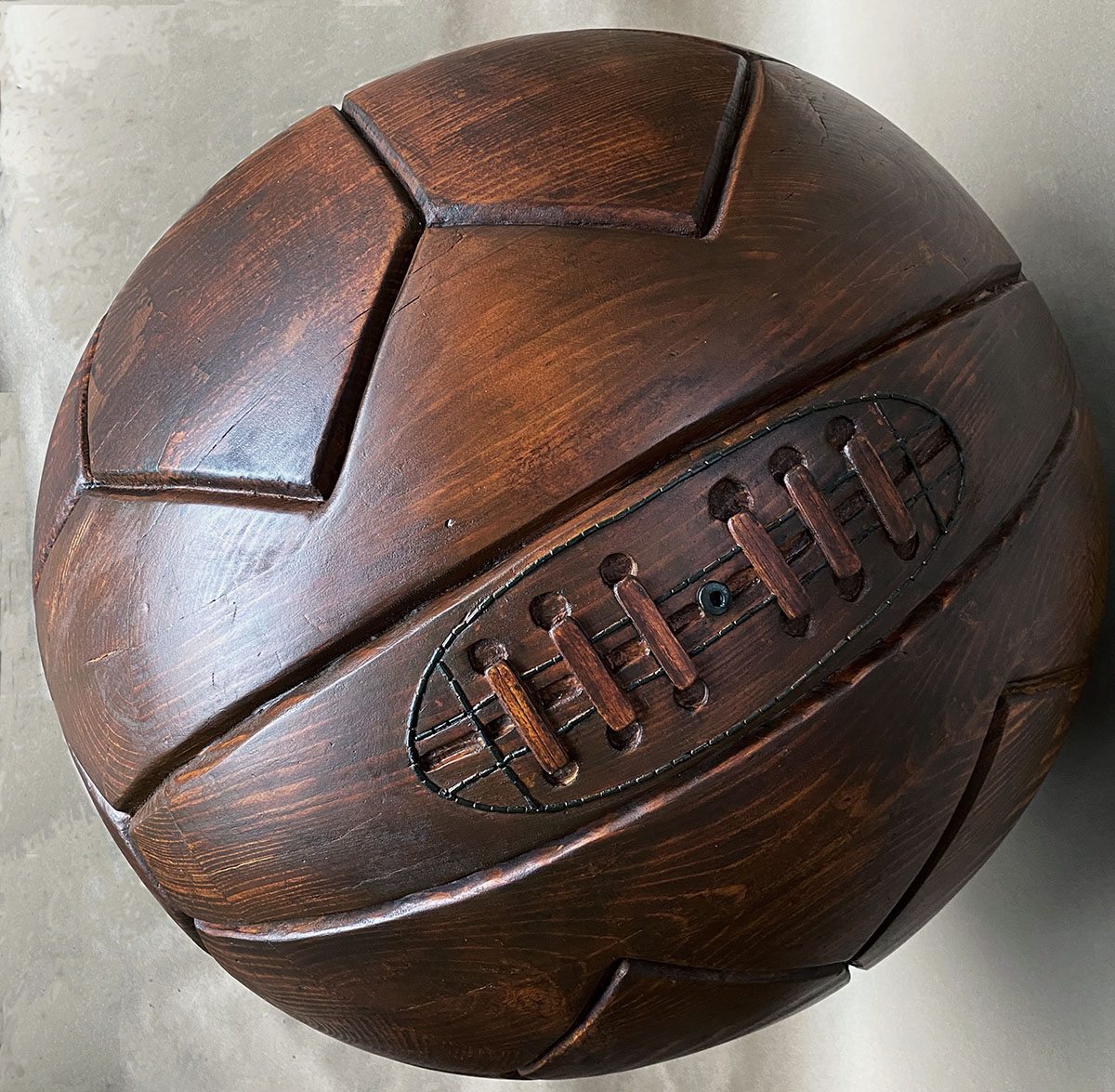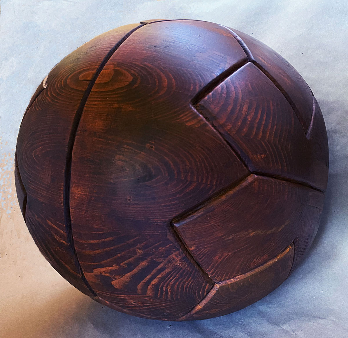2022, Esfera de madera labrada y entintada, .45 m diámetro, Colección particular